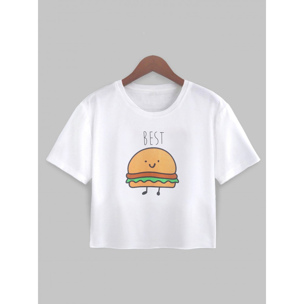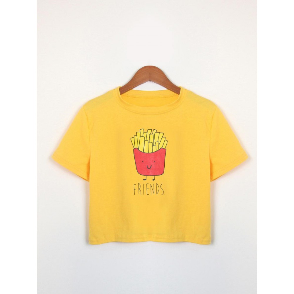 Explosive French Fries Burger Print Short T-Shirt