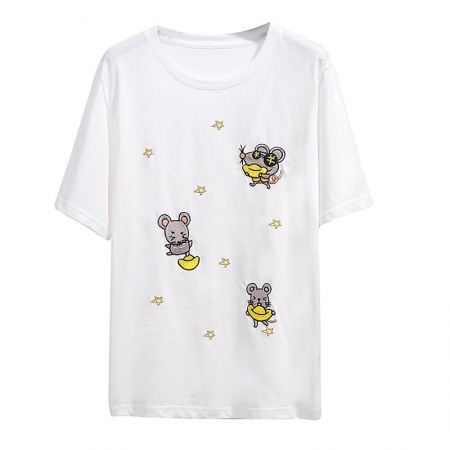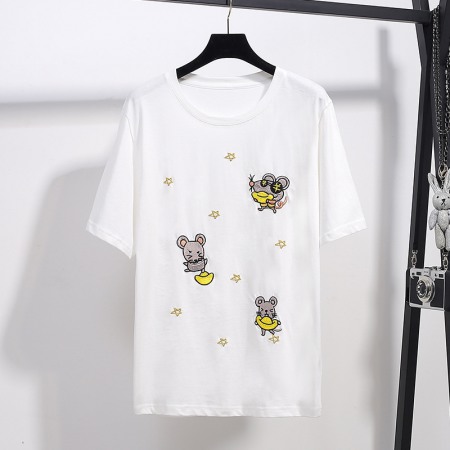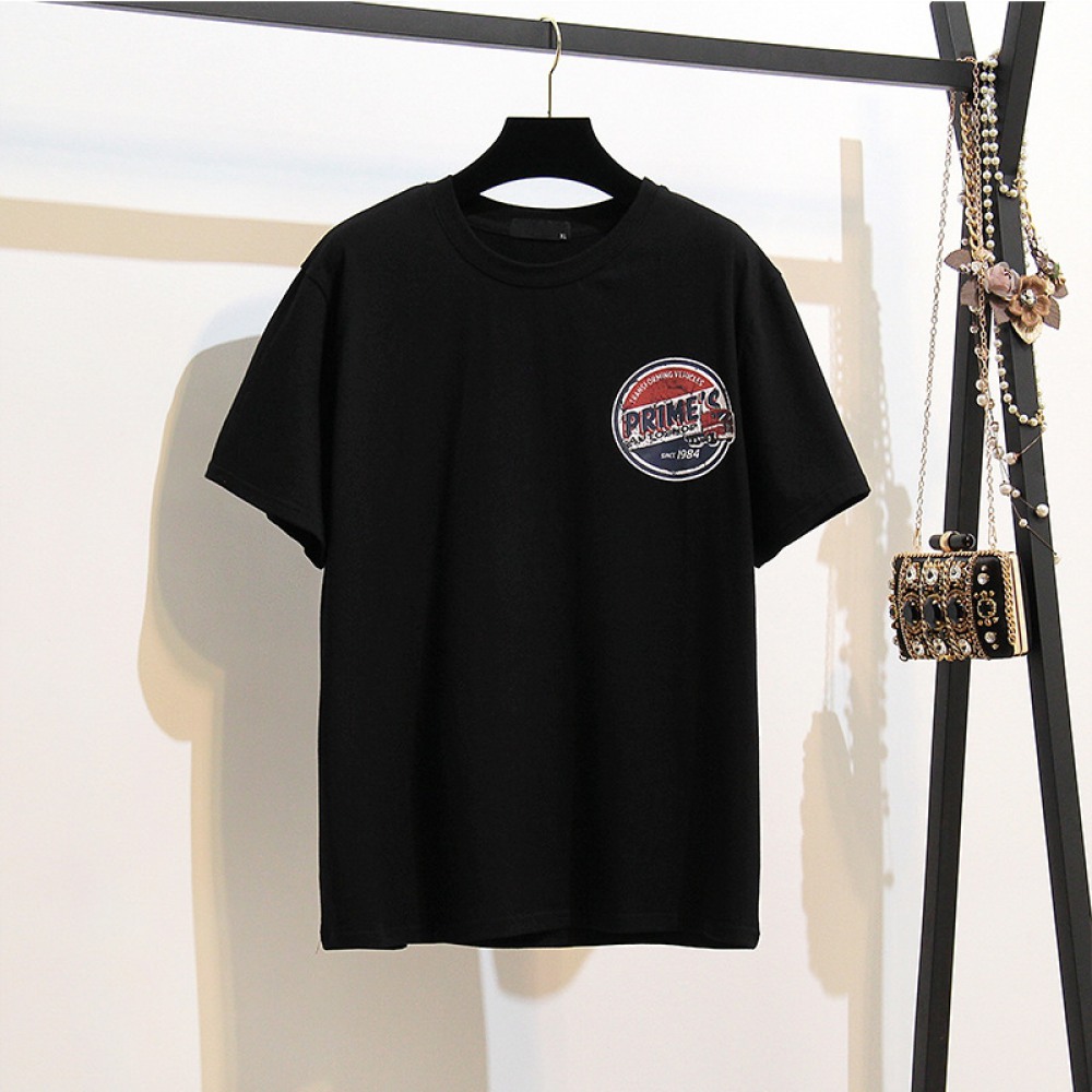 Round Neck Fat Sequined Top New Oversized Women's Loose Embroidered Short-Sleeved T-Shirt