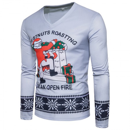 Hot Style Men's Christmas Mens Long-Sleeved V-Neck T-Shirt