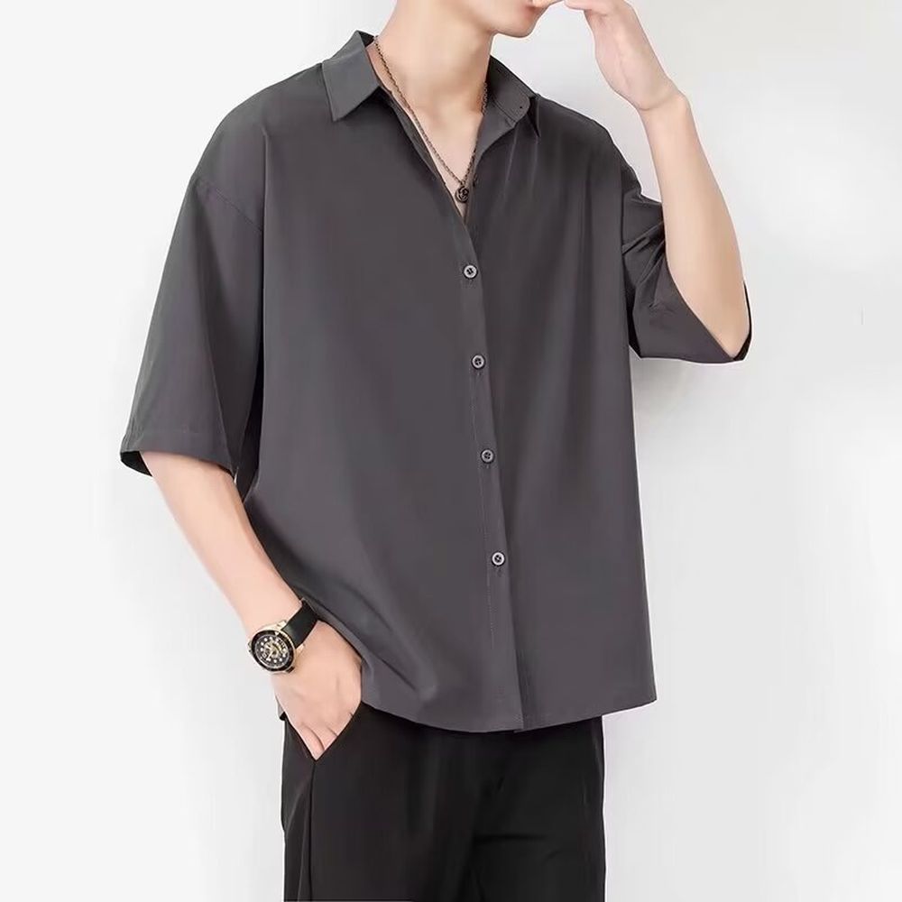Men's Ice Silk Shirt Short Sleeve Half Sleeve Shirt