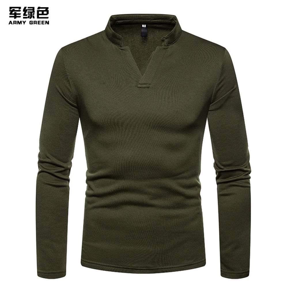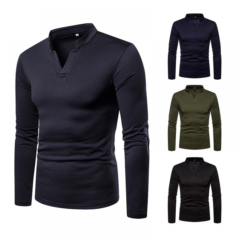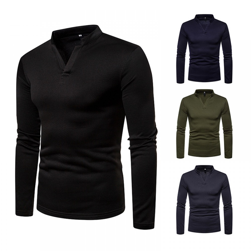 Men's Plus Size Plus Velvet Warm Henley Collar Long-Sleeved T-Shirt Bottoming Shirt