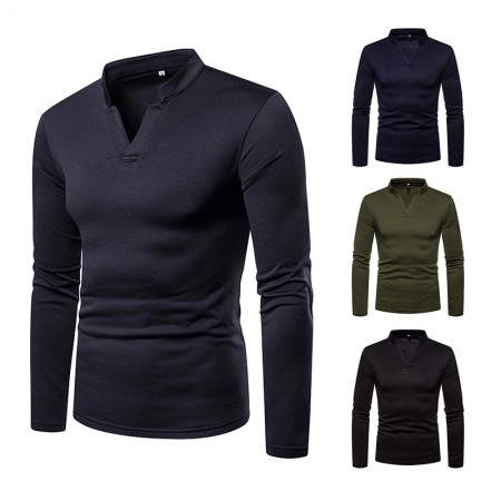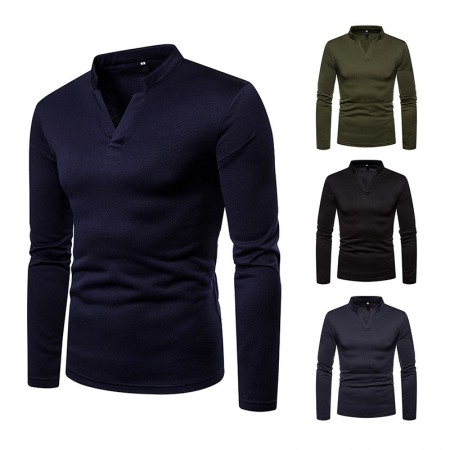 Men's Fashion Pile Collar Oblique Button Design Irregular Cut Slim Long-Sleeved T-Shirt