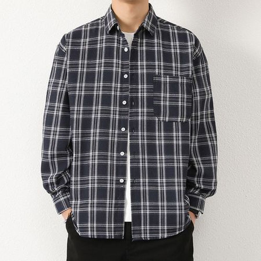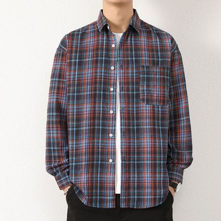 Men's Retro Plaid Shirt Casual Long Sleeve Shirt