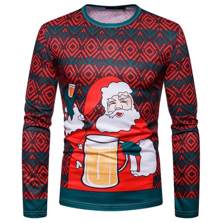 New 3D Personality Printing Fashion Men's Christmas Santa Pattern Long-Sleeved T-Shirt