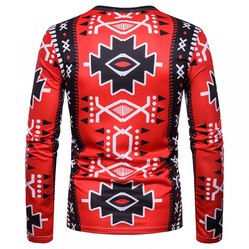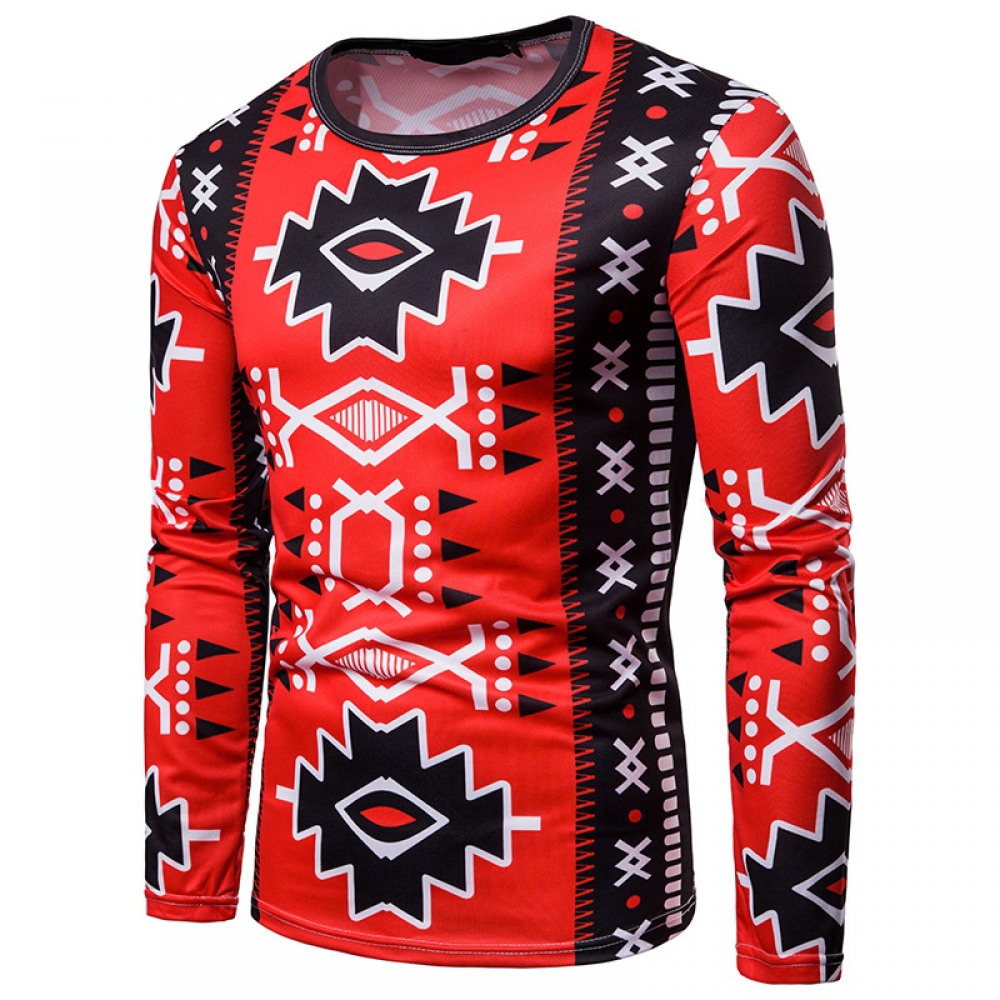 New Style Men's Fashion 3D Digital Printing Long-Sleeved Round Neck T-Shirt