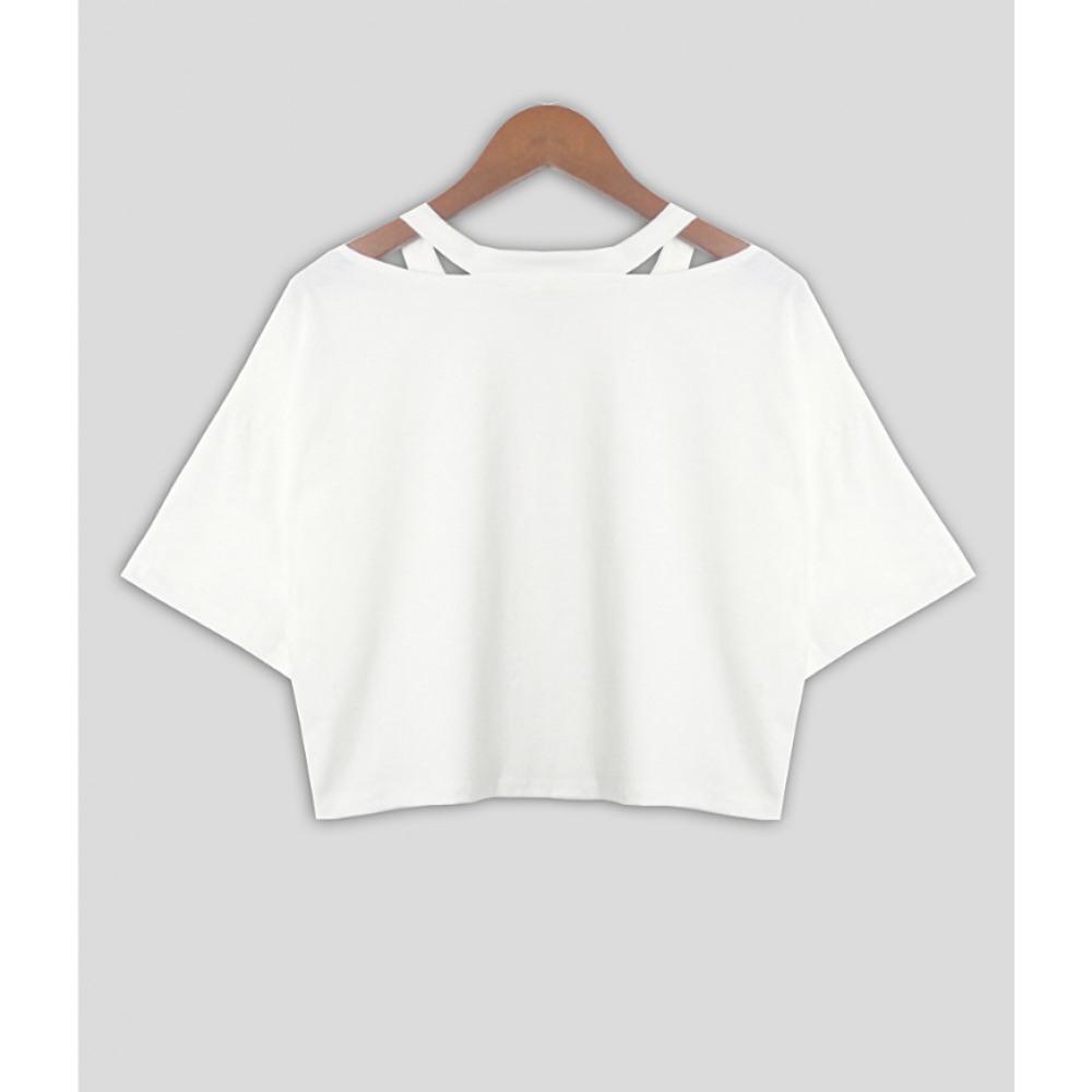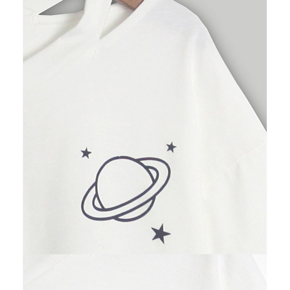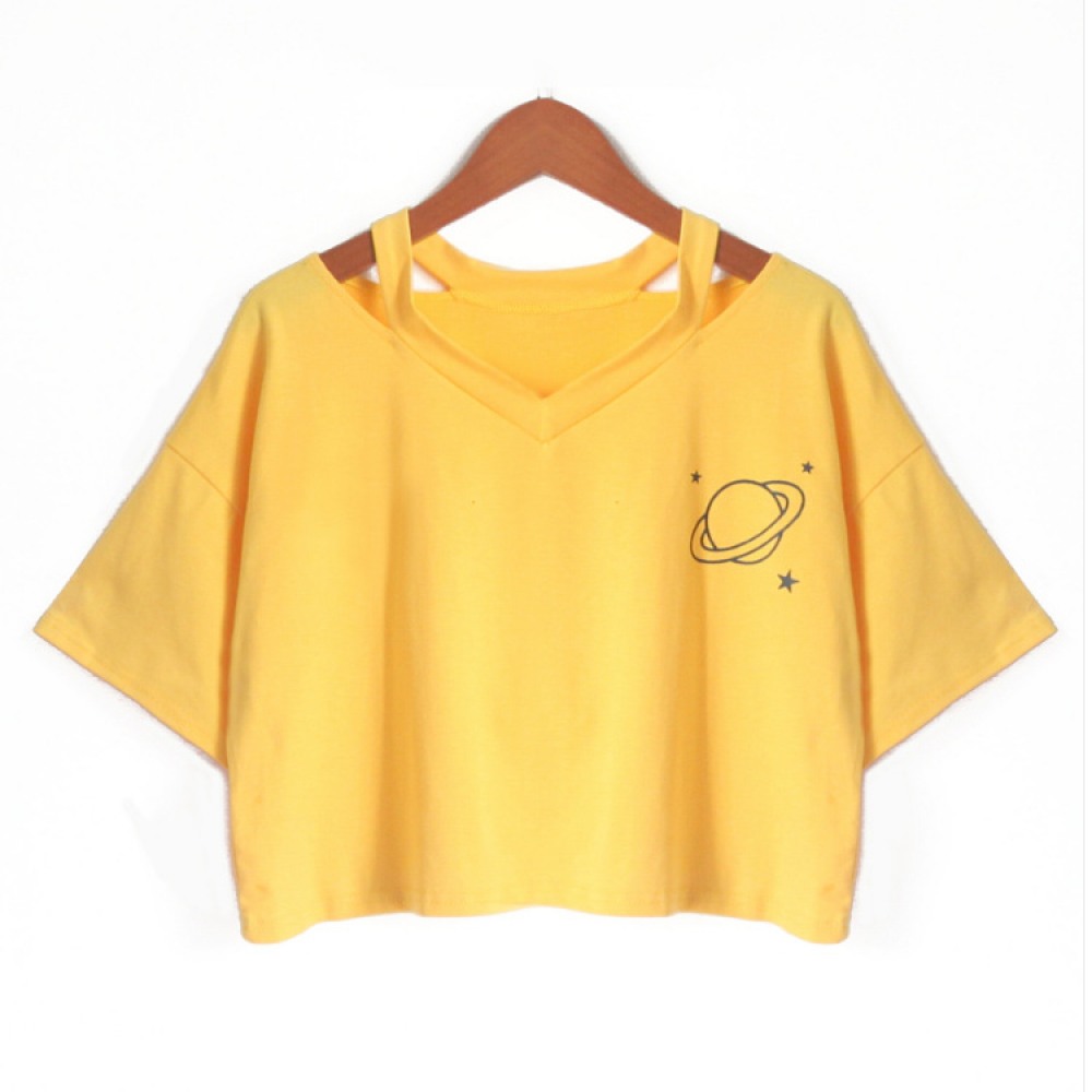 V-Neck Hollow Planet Print Short T-Shirt