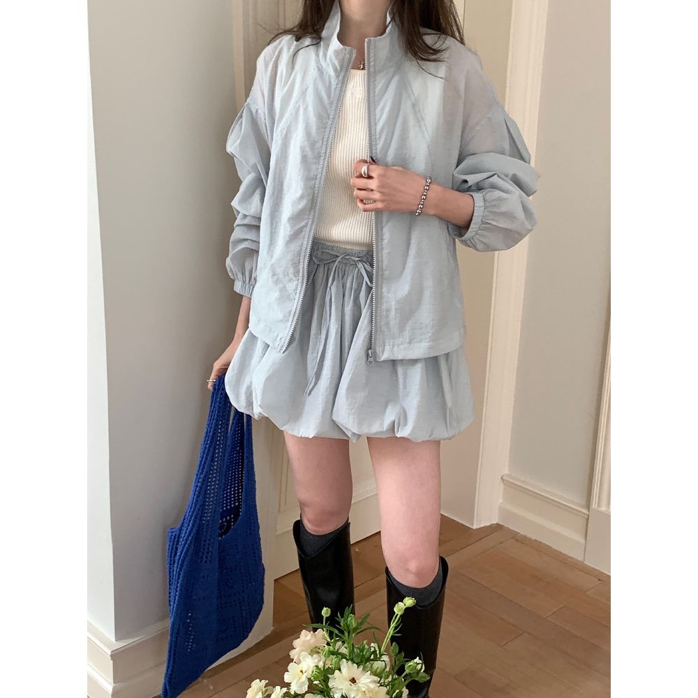 Women's Casual Stand Collar Zipper Cardigan Sun Protection Jacket Short Skirt
