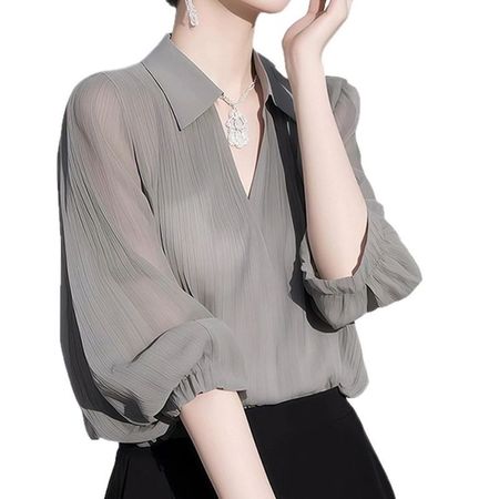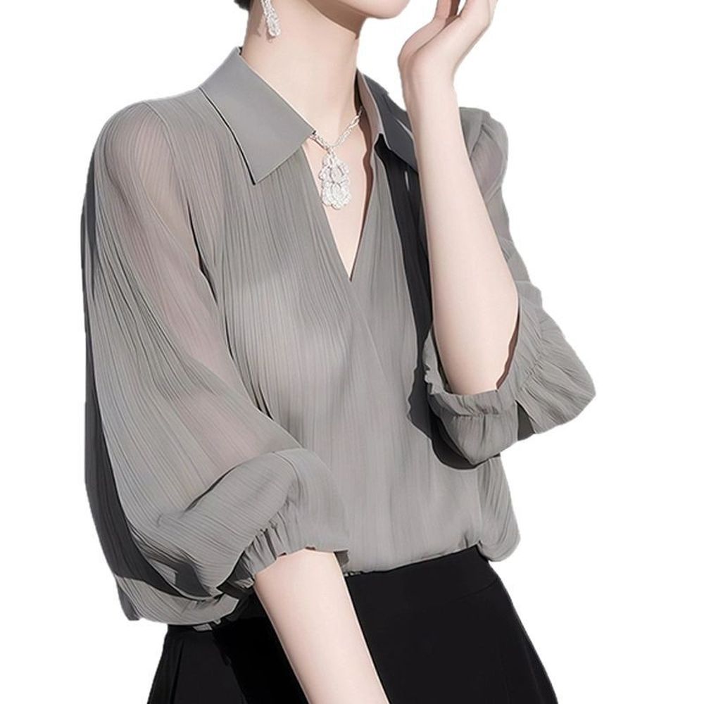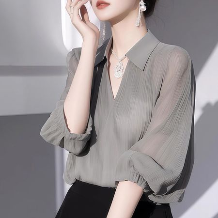 Women's High-End Grey Chiffon Shirt